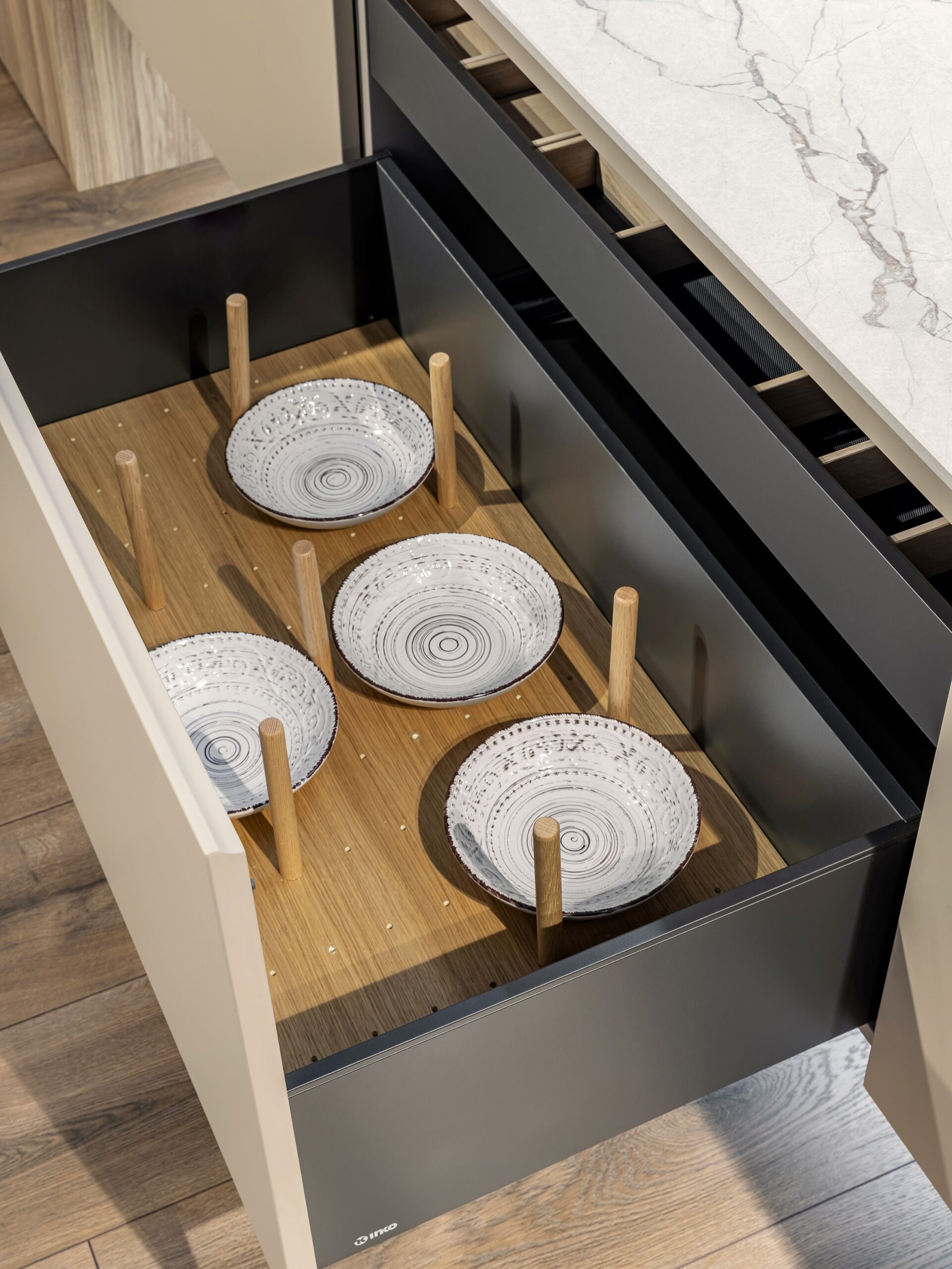 Ya sea en grandes espacios diáfanos o en cocinas modernas pequeñas, la clave del 2026 es la optimización vertical. Diseñamos columnas de almacenamiento que aprovechan toda la altura del techo, interiores extraíbles que sacan partido a cada rincón y soluciones a medida que convierten una pared compacta en una cocina de chef.