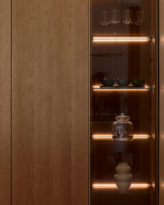 "En esta combinación entre el modelo Dolce combinado con Grove, se caracteriza por el tirador gola, que deriva directamente de la forma de la puerta de 19 mm de espesor."