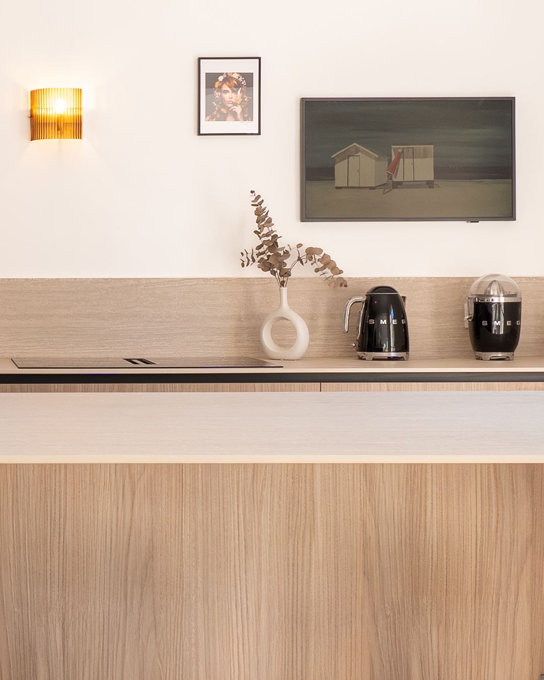 Para vestir este proyecto, se ha seleccionado nuestro modelo BISTRO en acabado Loira, un laminado efecto madera de gran calidez que aporta textura y equilibrio visual.